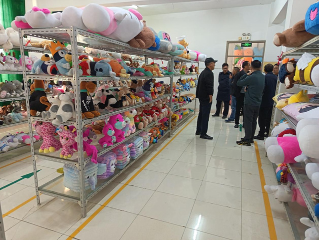 毛文娟对“南工—苏豪” 校企合作取得的成果给予高度肯定。她指出,苏豪作为江苏省市场影响力位于前列的500强企业,与南工在人才培养、横向项目、实习就业等方面开展了深入的合作,形成了优势互补、协同发展的良好格局。她希望以此次交流为契机,推动学校“工科+文科”专业群与企业在生产制造、商业运营、艺术设计等领域全面合作,在学生实习就业、教师实践锻炼、产学研项目合作等方面构建长效机制,助力企业创新发展与学校人才培养质量双提升。阮晓文结合自身成长经历,表达了对上马玩具长期发展的敬意,希望双方围绕玩具宠物产业发展、人才联合培养、实践课程教学、实习就业进行深度合作。孙静松向苏豪、弘业、永恒三方企业赠送自己创作的艺术作品以示感谢。会谈结束后三方人员共同参观了上马玩具的生产车间、研发中心及产品展示区。从原料加工、模具制作到成品组装,详细了解了玩具生产全流程。